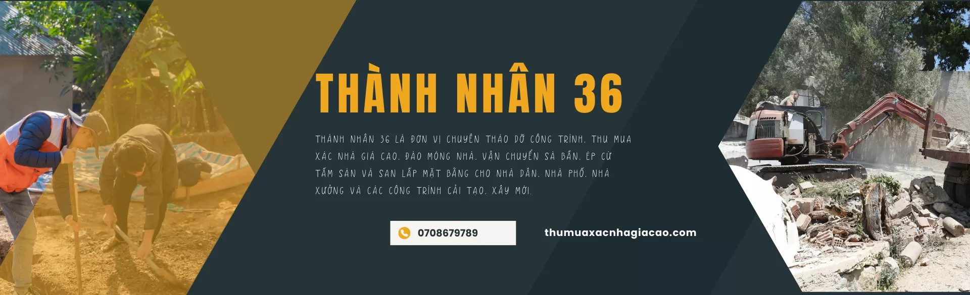Thành Nhân 36 là đơn vị chuyên tháo dỡ công trình, thu mua xác nhà giá cao, đào móng nhà, vận chuyển sà bần, ép cừ tấm sàn và san lấp mặt bằng cho nhà dân, nhà phố, nhà xưởng và các công trình cải tạo, xây mới. Với đội ngũ thi công nhiều kinh nghiệm, máy móc đầy đủ và quy trình làm việc rõ ràng, Thành Nhân 36 cam kết thi công nhanh – an toàn – đúng tiến độ, hạn chế tối đa ảnh hưởng đến công trình xung quanh. Chúng tôi báo giá minh bạch, không phát sinh chi phí, hỗ trợ khảo sát tận nơi và tư vấn phương án tối ưu, giúp khách hàng tiết kiệm thời gian và chi phí trong suốt quá trình thi công.